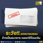 - ระวัง!!…จดหมายปลอม อ้างเป็นธนาคาร หลอกให้โอนเงิน