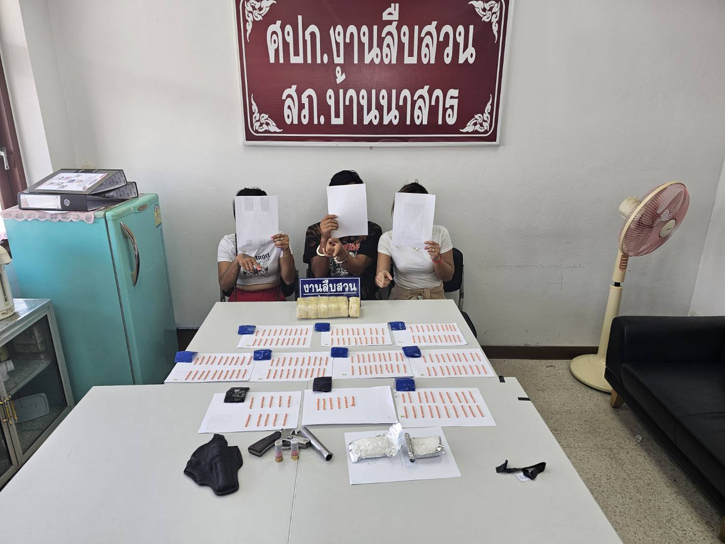 สภ.บ้านนาสาร จับกุม อาวุธปืนสงคราม ทลายเครือข่ายยาเสพติดในพื้นที่